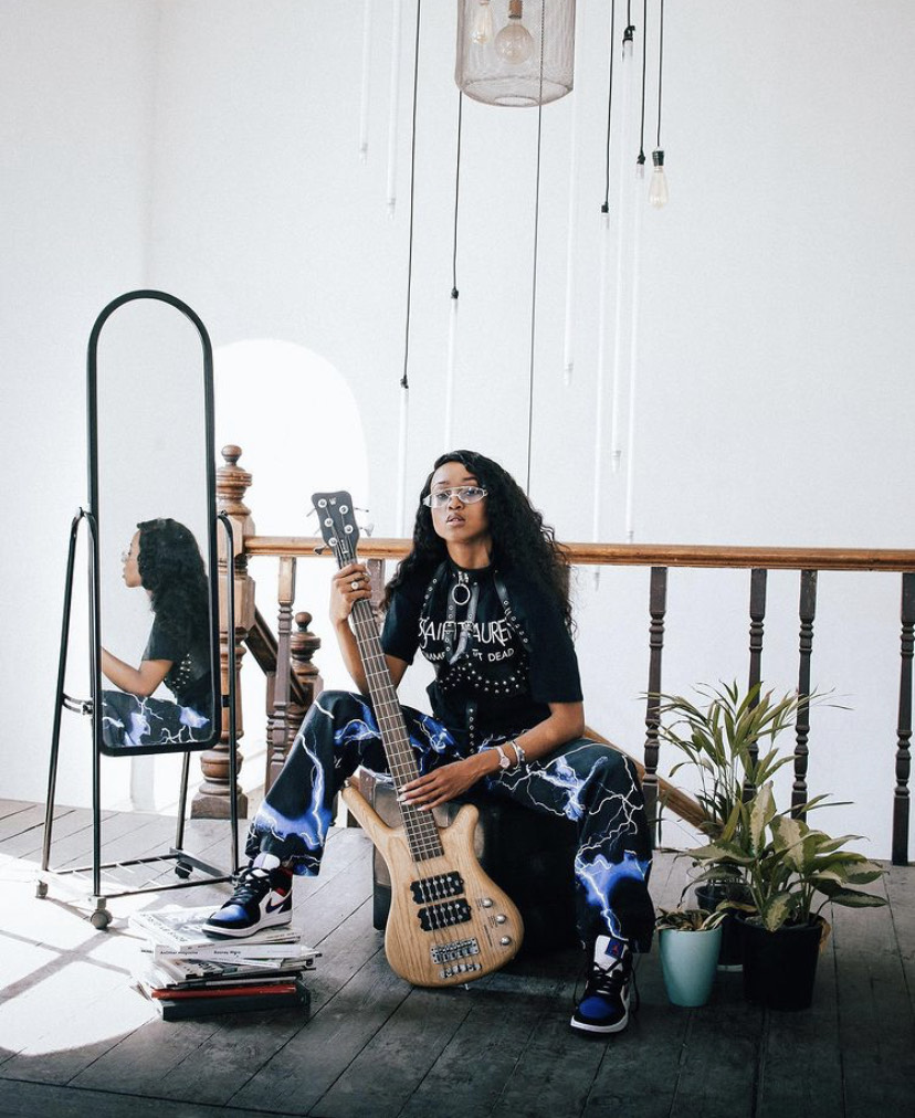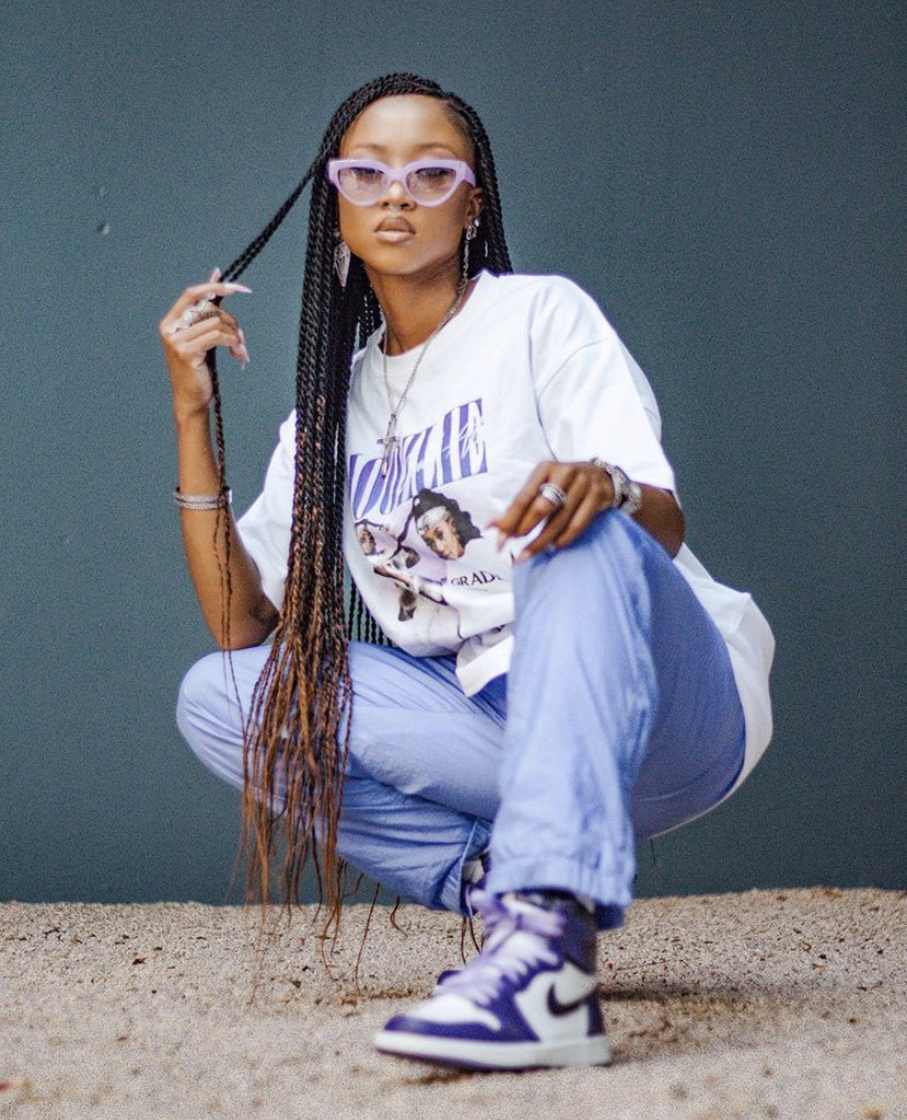 Moozile has shown that owning a graphic t-shirt is essential. She wears graphic t-shirts with tuck pants or jeans, a pair of iconic Jordan 1s and jewelry such as shades and bucket hats to round up the look.